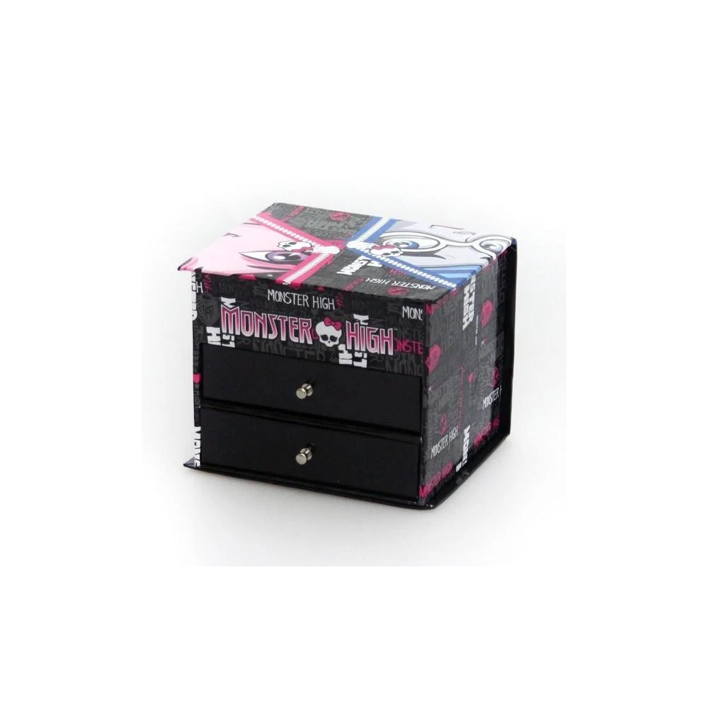 Boite à bijoux de couleur noire avec 2 tiroirs et une décoration inspirée par les « Monster High ».