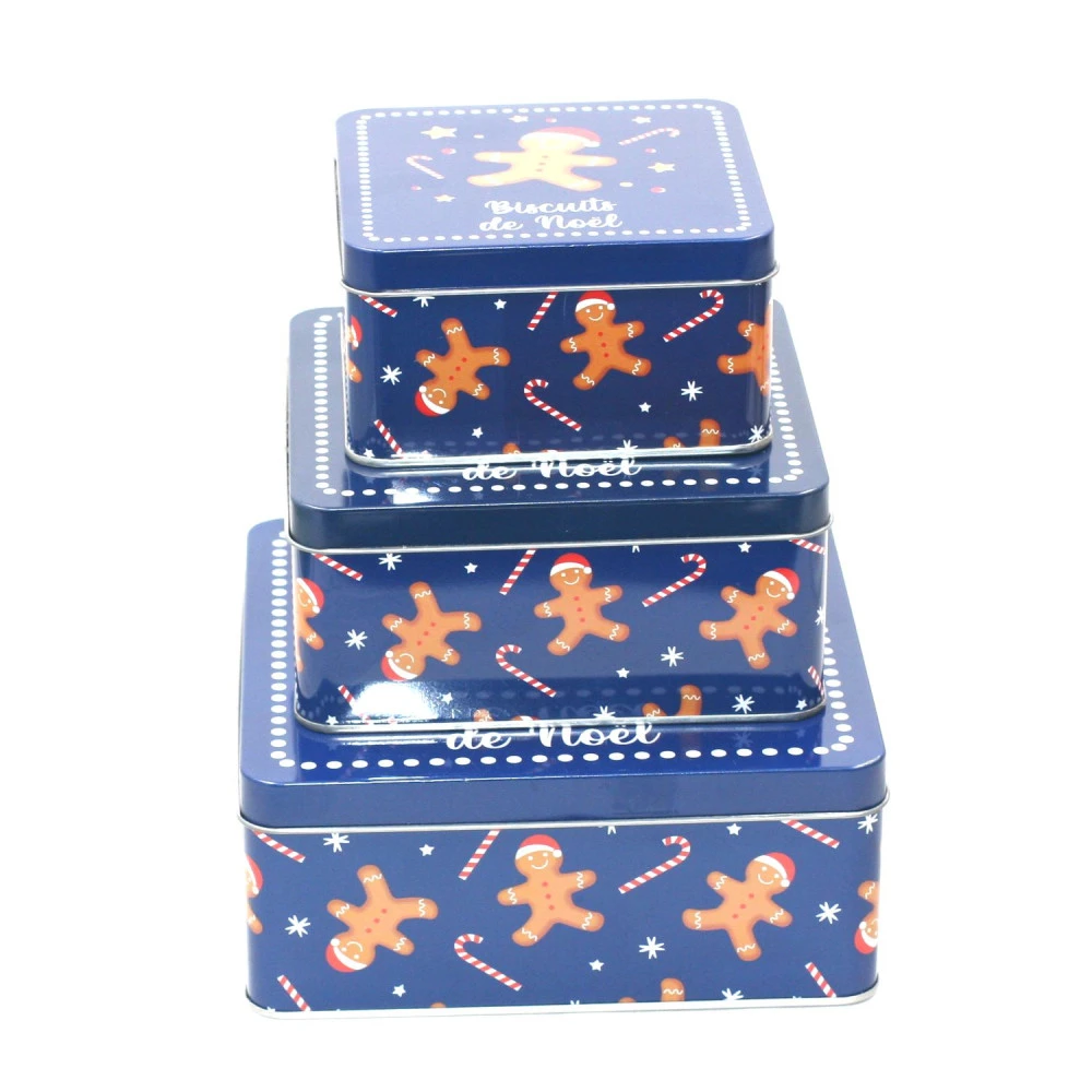 Voici venir le temps des préparatifs de Noël et sa cohorte de traditions, les petits gâteaux fait maison en font partie avec ces boites gigognes en métal ils seront bien protégés à moins qu’ils soit dévorés trop rapidement… Dimensions : petite : 12 x 12 x 6 cm, moyenne : 15 x 15 x 7 cm, grande : 17 x 17 x 8 cm