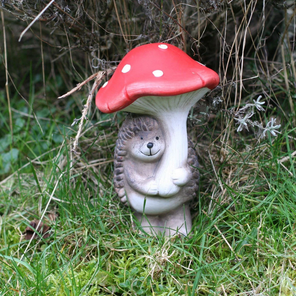 Déco De Jardin 22 Cm En Céramique – Hérisson Avec Champignon Rouge