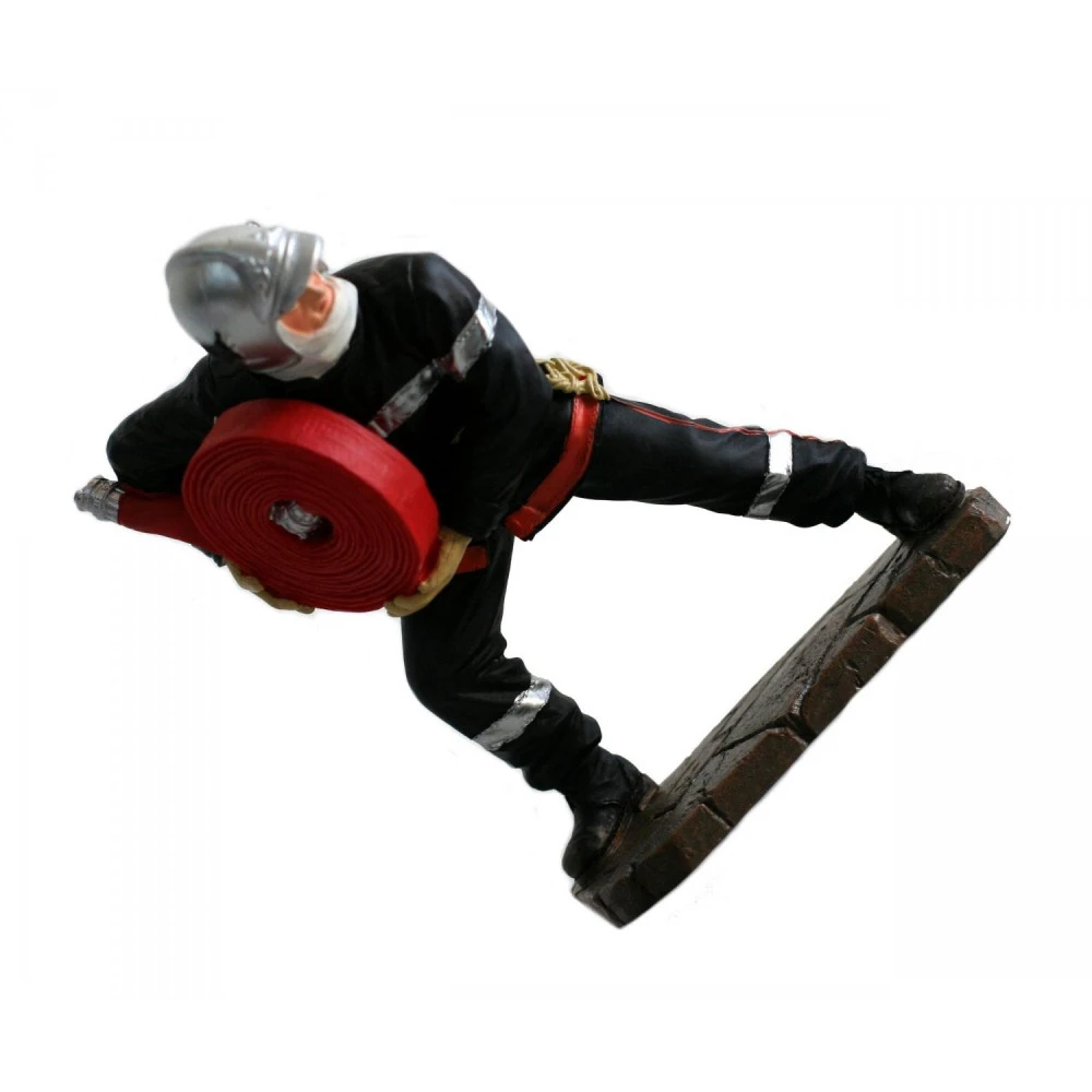 Figurine de décoration en résine représentant un pompier déroulant un tuyau. Hauteur 16.5 cm