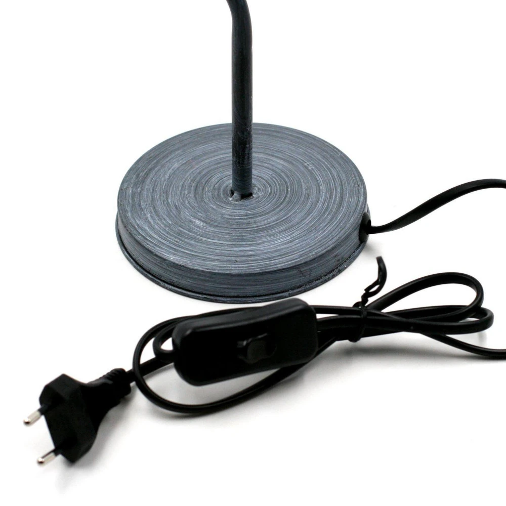 Lampe à poser d’une hauteur de 44 cm avec pied en métal brossé et abat jour en tissu gris.