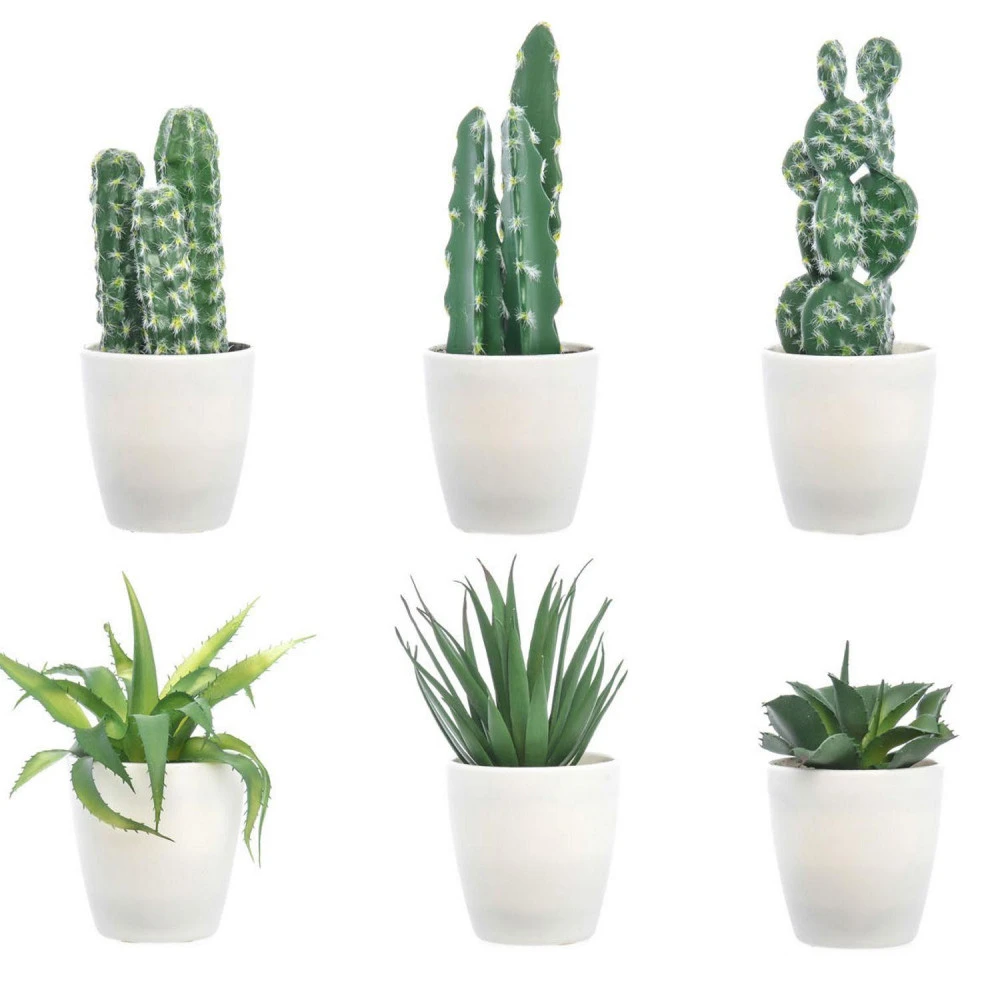 Lot de 6 Faux Cactus Assortis dans des petits pots blancs
