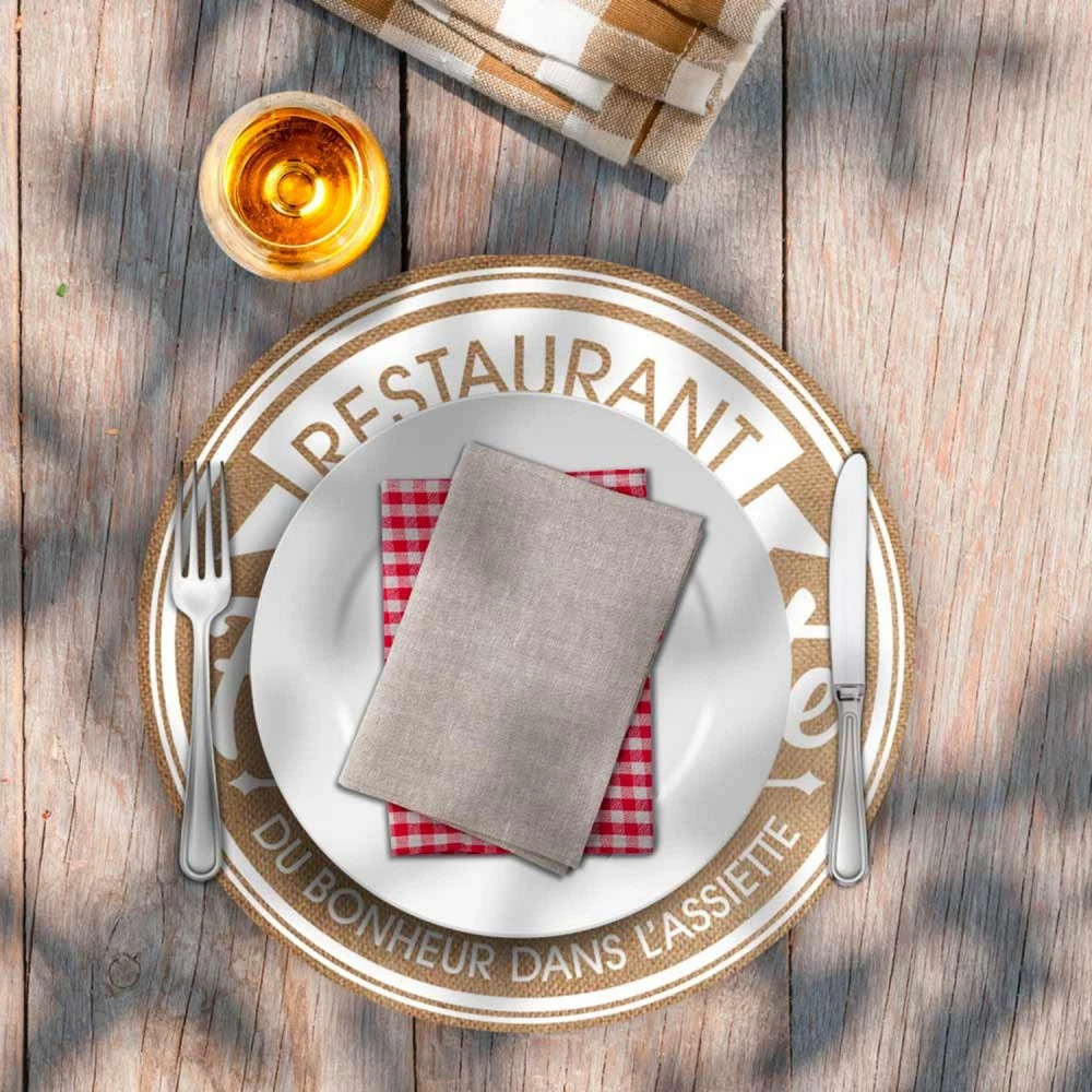 Ce lot de 6 set de table style traditionnel avec l’inscription « Restaurant la bonne franquette, du bonheur dans l’assiette »