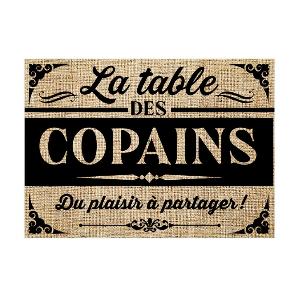 SET DE TABLE « LA TABLE DES COPAINS » Idéal pour une décoration de table rétro et tendance.Matière : JuteDimension: H30 L42 cm