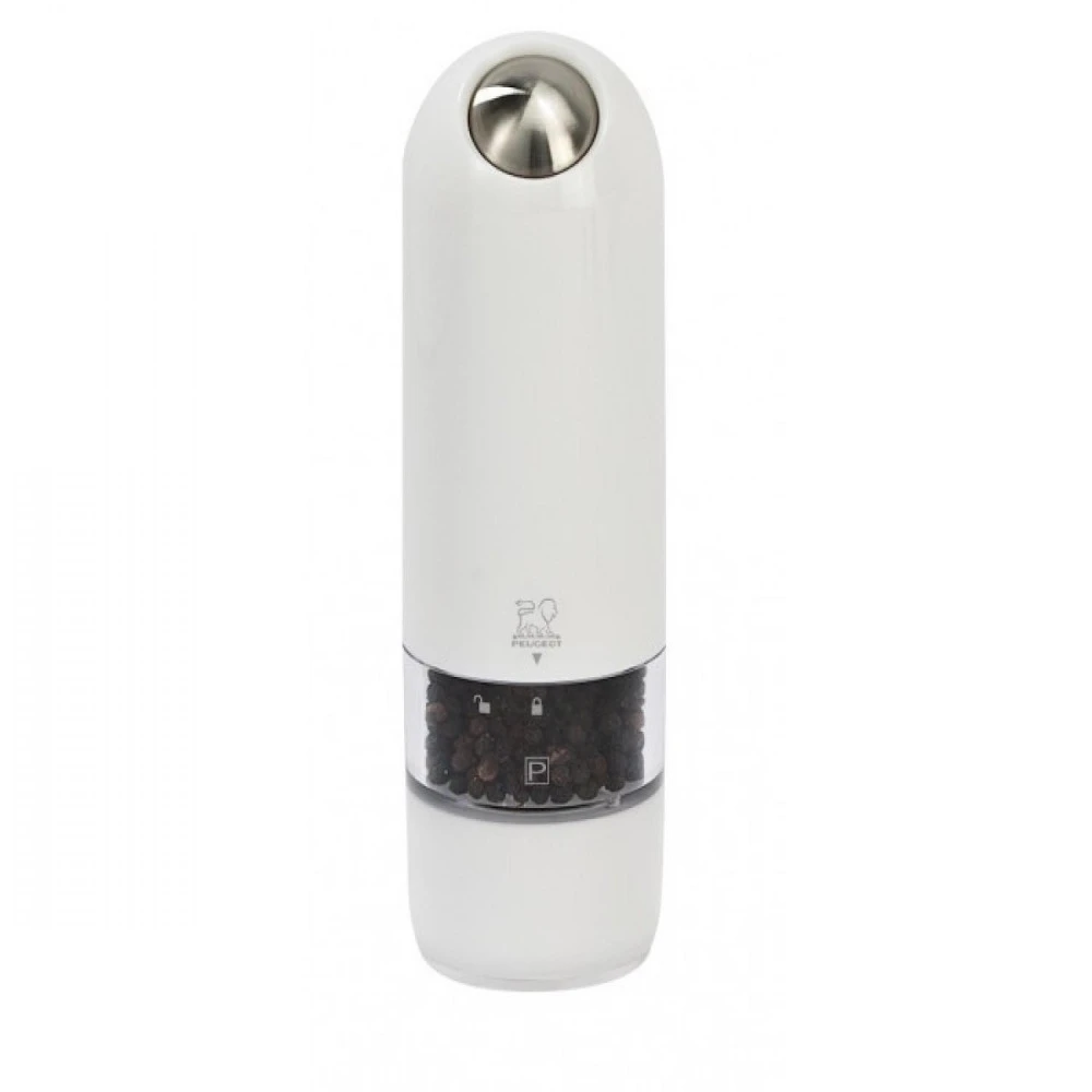 Moulin à poivre électrique Alaska en polycarbonate et ABS de 17 cm. Une ampoule s’allume lors de l’utilisation. Livré avec 6 piles et une ampoule de rechange.