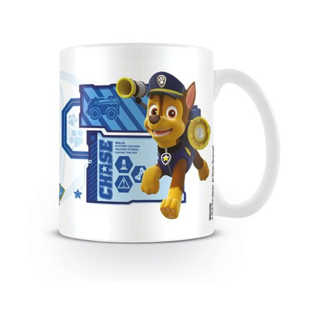 Ce mug blanc est décoré avec chase le chien policier Paw Patrol qui est l’un des 6 compagons de Ryder.