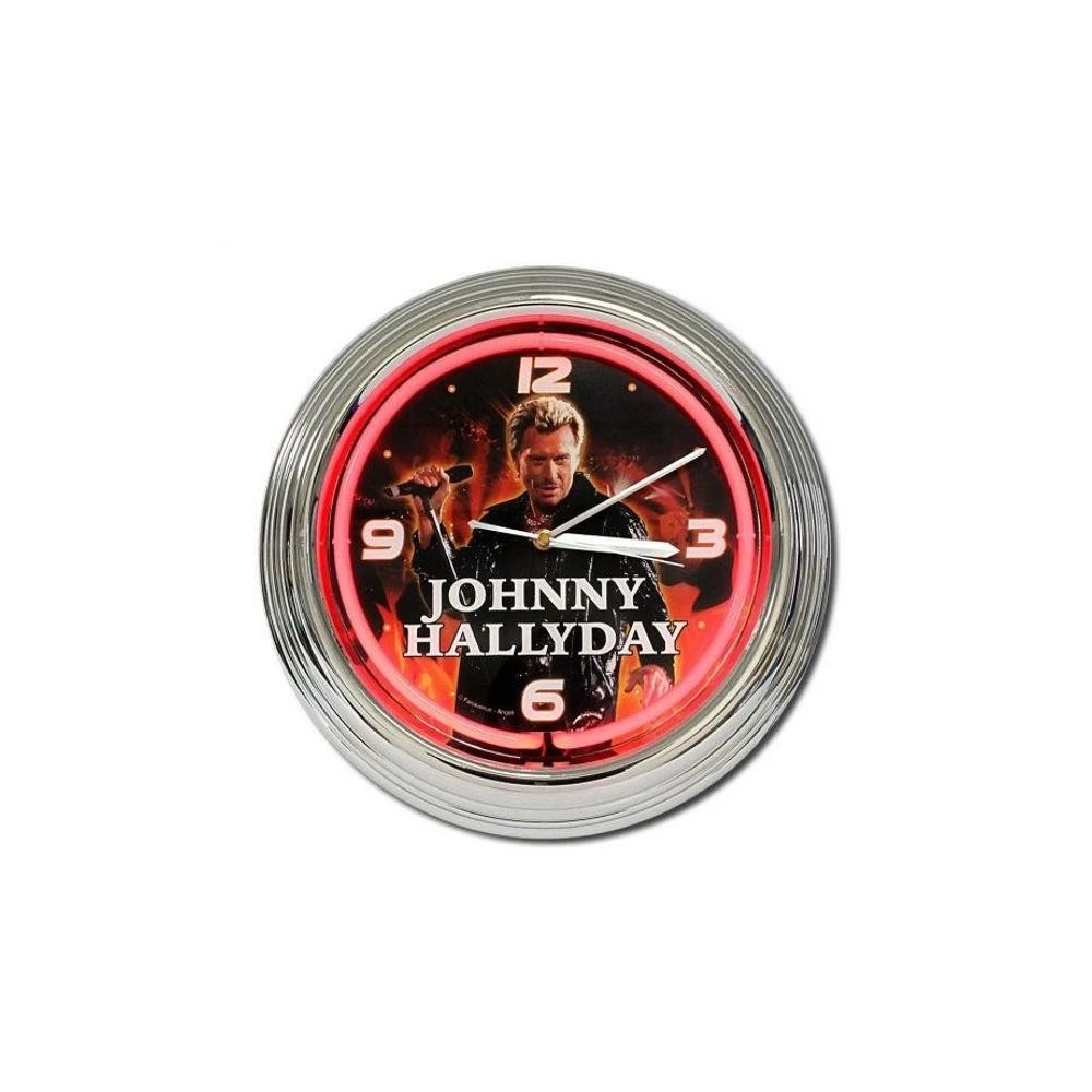 Magnifique pendule de la collection Johnny Hallyday avec éclairage par néon de couleur rouge. Alimentation du néon par transformateur fonctionnant sur 220 V. Alimentation de l’horloge par une pile classique 1,5 V non fournie.