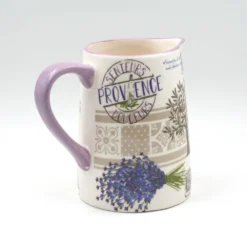 Joli pichet de table, parfait pour vos repas en famille ou entre amis. Avec des motifs tel que des savons de Marseille et de la lavande, cet accessoire de table de la collection Senteurs de Provence sera parfait pour votre eau, votre vin ou encore vos autres boissons lors de repas. Dimensions, diamètre environ 8 cm sur 15 cm de hauteur, contenance 70 ml