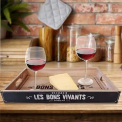 Le plateau repas « Les Bons Vivants » est un accessoire indispensable pour servir vos invités avec bonne humeur et convivialité. Son design soigné et sa phrase design « Brasserie Les bons vivants depuis 1818 » éveilleront l’appétit de vos convives. Fabriqué en bois de palette, ce plateau apporte une ambiance chaleureuse à votre cuisine et est également un élément de décoration à part entière.