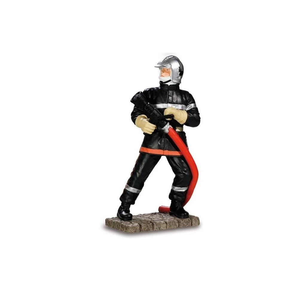 Figurine en résine d’une hauteur d’environ 20 cm représentant un pompier utilisant une lance à incendie