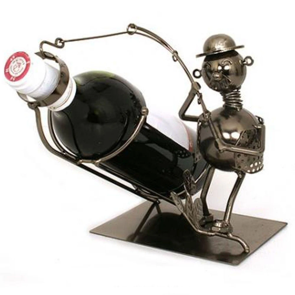 Un porte bouteille avec une forme originale représentant un pécheur assis, 23 x 17.5 x 9 cm, idéal pour vos bouteilles de vin lors des repas ou des apéritfis