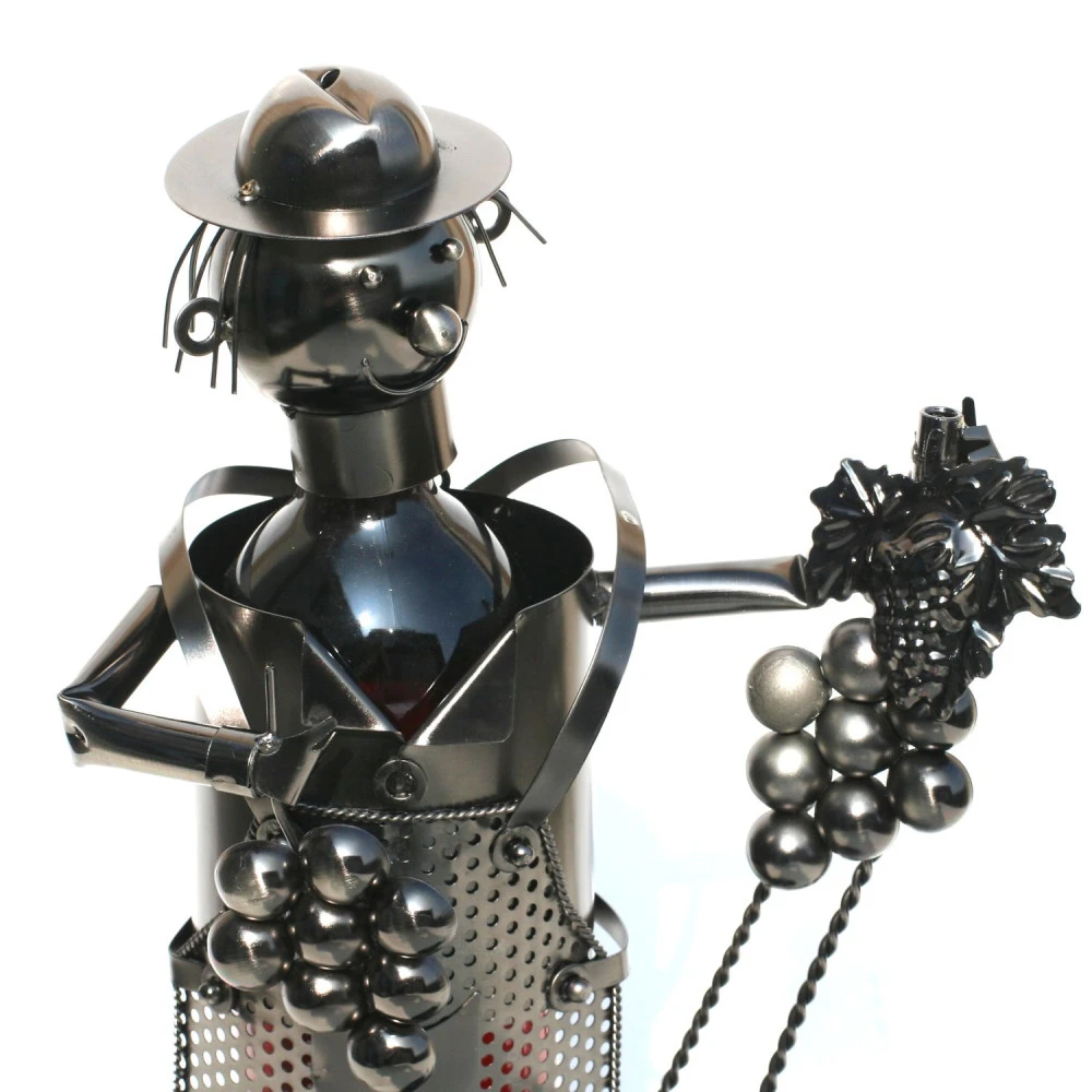 Ce personnage est un Vigneron qui ramasse son raisin, il est fabriqué en métal pour offrir une bonne tenue de vos bouteilles. Le porte bouteilles Vigneron est dans la thématique du Vin et fait un objet parfait pour décorer vos tables lors d’évènement comme un Mariage ou bien lors de vos repas du quotidien. Il peut également faire l’objet d’un cadeau pour un proche amateur de Vin, ou même simplement à un Vigneron.