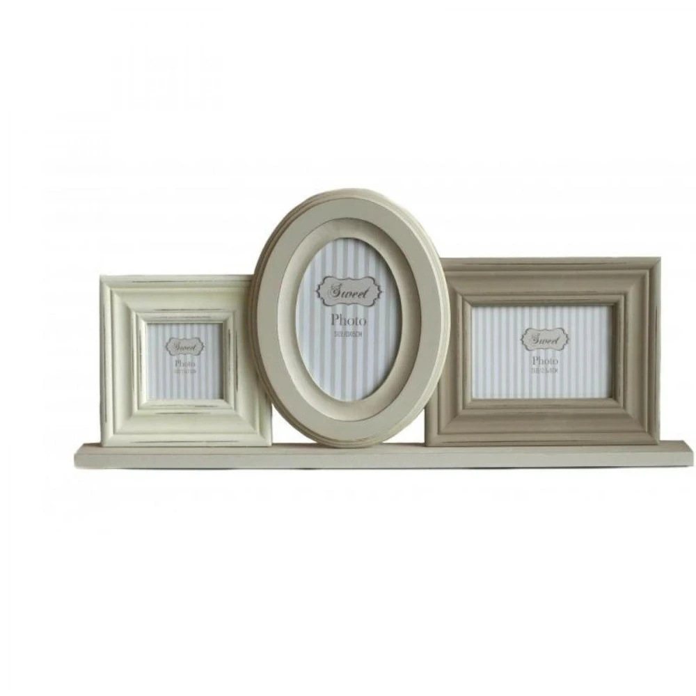 Porte photo multivues 3 cadre en bois, dimensions 55 x 23 cm. Dimensions des cadres 7,5 x 7,5 cm / 10 ö 15 cm / 12,5 x 9 cm.