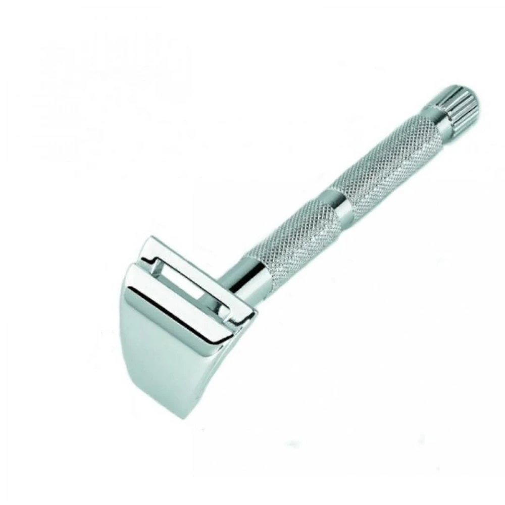 Rasoir Merkur DOVO moustache et sourcils finition chrome. Vendu en écrin transparent