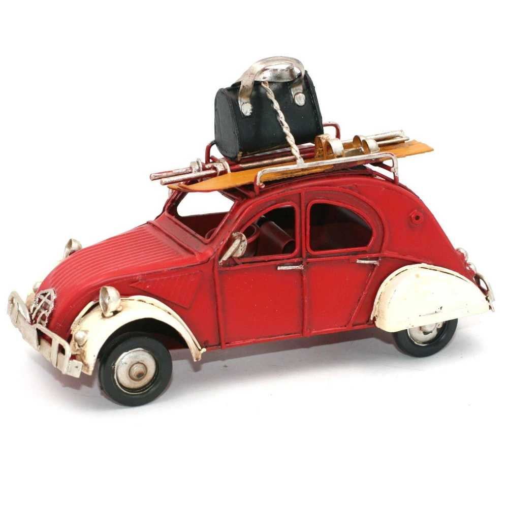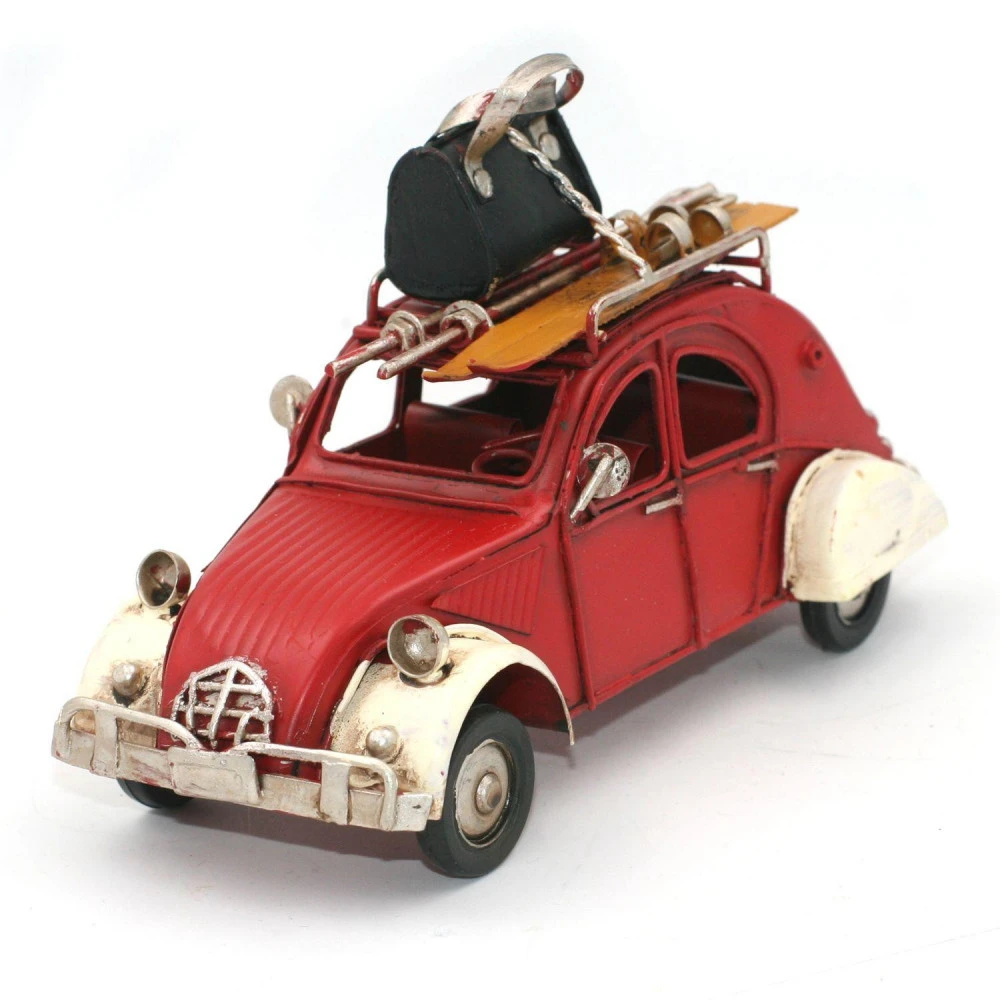Réplique métal voiture modèle départ au ski, accessoire de déco vintage