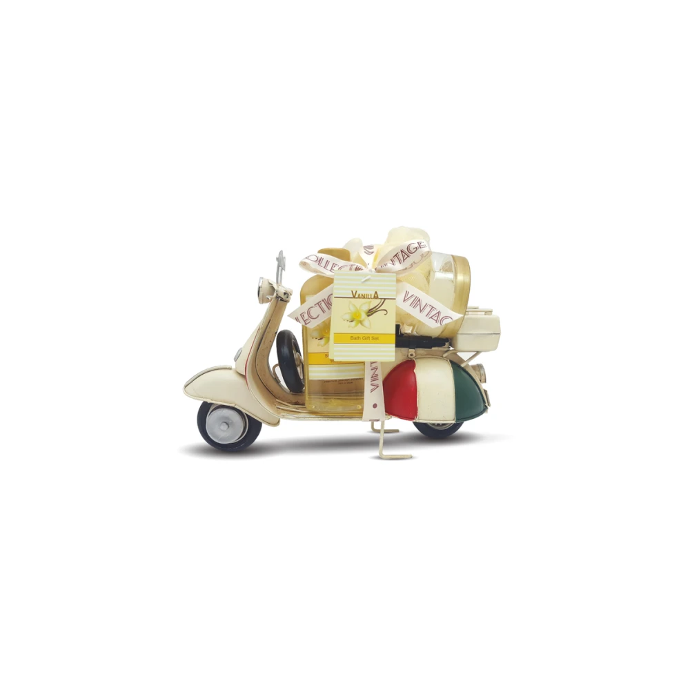 Ce set de toilette est présenté avec un Scooter Vespa en métal pour les collectionneurs.