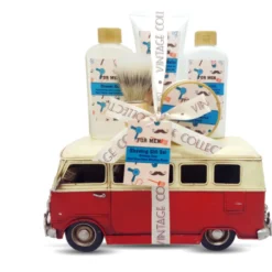 Cet ensemble est présenté dans un Combi Volkswagen rouge en métal pour les collectionneurs et passionnés de la marque allemande.
