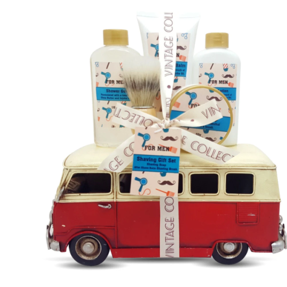 Ce coffret cadeau comprend un set de rasage avec gel douche (160ml), lotion corporelle, savon de rasage, blaireau, après-rasage…
