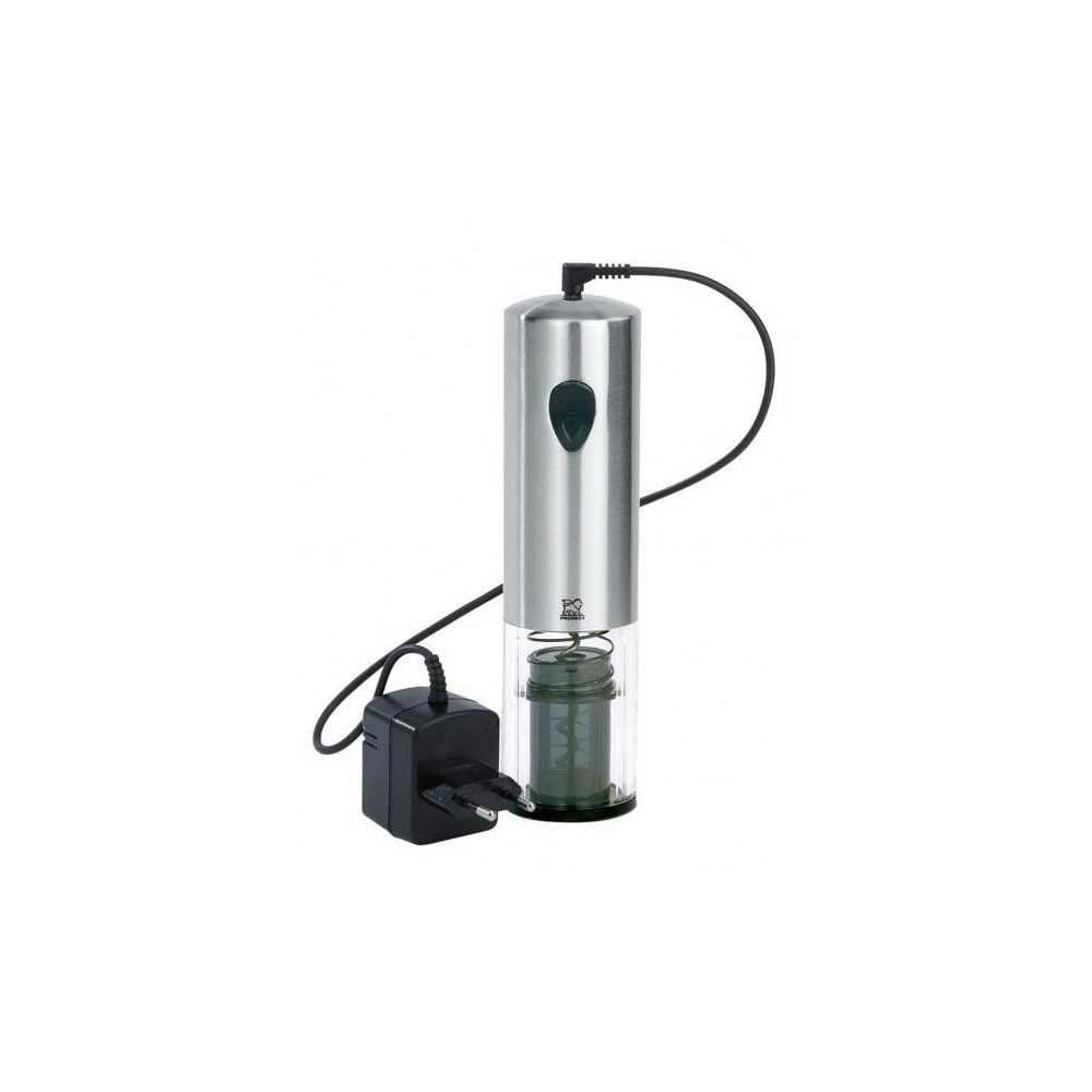 Tire-bouchon électrique « ELIS » en inox et polycarbonate de la marque PEUGEOT. Fonctionne à l’aide de batteries rechargeable. Permet d’extraire sans effort tout type de bouchons en quelques secondes. S’adapte à tous les goulots et permet de retirer tous les types de bouchons. A offrir aux inconditionnels du bon vin.