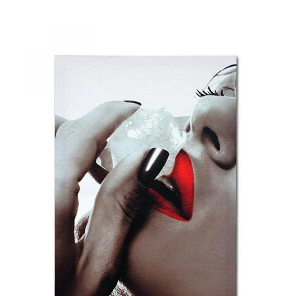 Toile sur cadre bois, dimensions 40 x 60 cm représentant un glaçon sur des lèvres