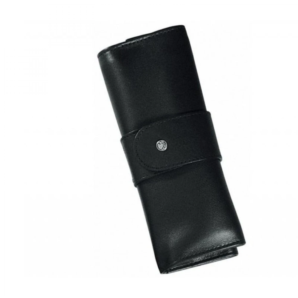 Trousse manucure Dovo en cuir noir, avec ciseaux ongles et envies 9 cm nickelés. Pince à ongles nickelée 13 cm ouverte, lime diamant. Pince à épiler nickelée, outil double usage.