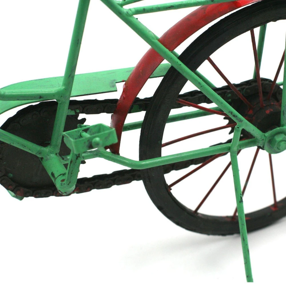 Vélo de Décoration en MétalLongueur environ 50 cm hauteur 26.Comporte plusieurs parties en bois : selle, poignées, et moyeux.Roues et pédalier mobiles